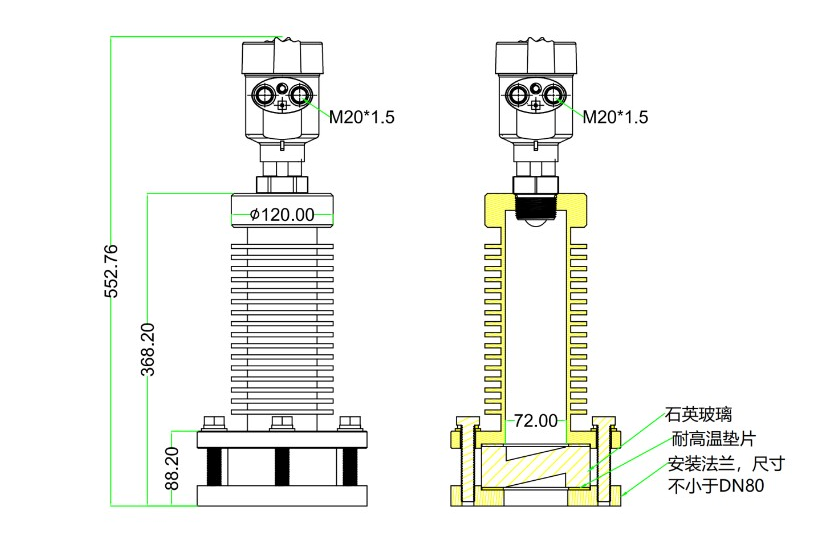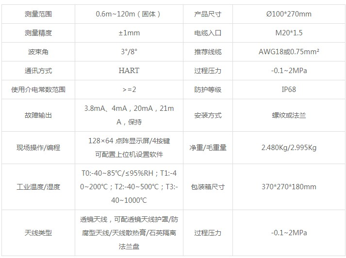 -波束角小(最小5度),能量集中,具有更强抗干扰能力,大大提高了测量精度和可靠性;